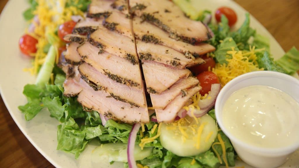 smoke turkey & ham, cheddar jack, bacon, egg, tomato, onion, crouton